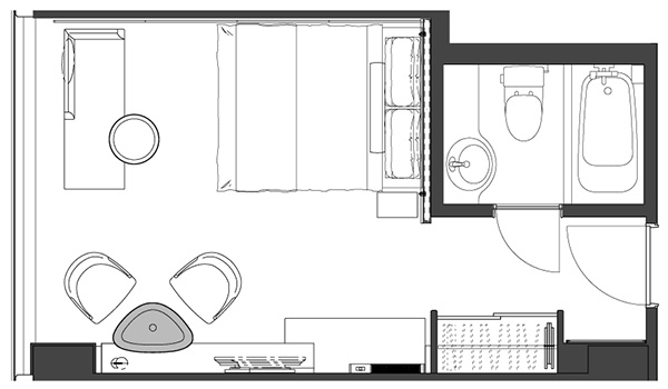 お二人でゆったりとおくつろぎいただけるよう、160cm幅のクイーンサイズベッドを配したゆっくりとお過ごしいただけるお部屋です。ワンランク上のホテルステイを満喫いただけます。