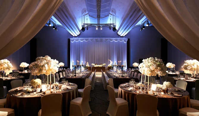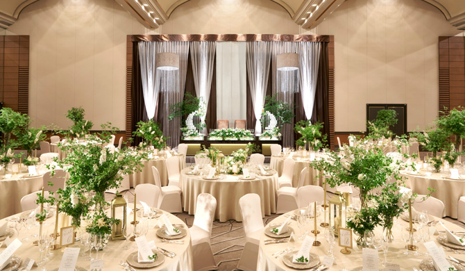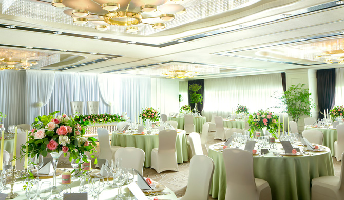 姫路最大級、300名様までご招待できる大きな空間で、数々のVIPをおもてなししてきた、ホテル日航姫路のメインバンケット。