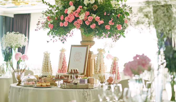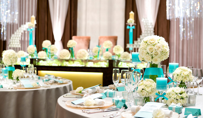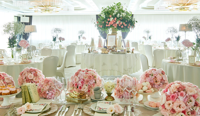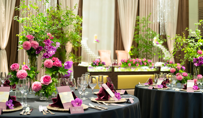 少人数でのアットホームなお披露目会から、300名様での大披露宴まで、ご招待したいゲストの人数に合わせて選べる多彩なバンケット。おふたりのご希望や衣裳に合わせて、装花やテーブルクロスでトータルコーディネートいたします。