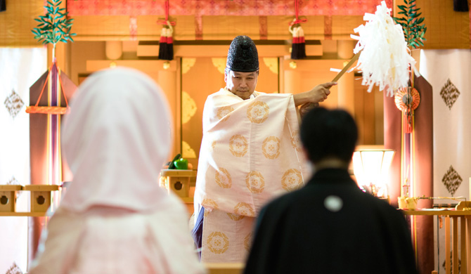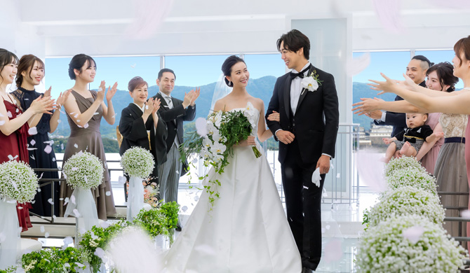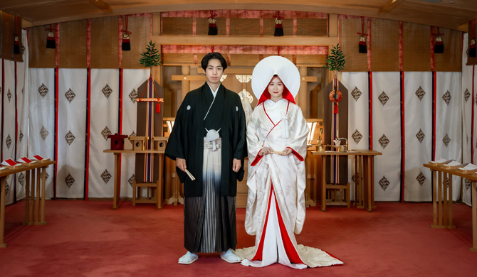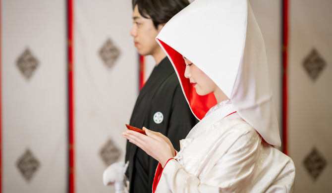 花嫁の清らかな美しさを象徴する白無垢に身を包み、これまでふたりを大切に育ててくれた、両家の家族や親族に見守られながら、三々九度で契りをかわす、代々受け継がれてきた日本の伝統に満ちた挙式が叶います。